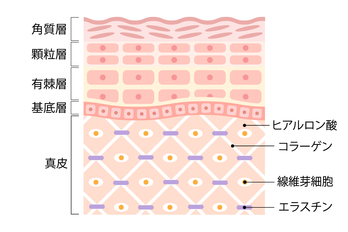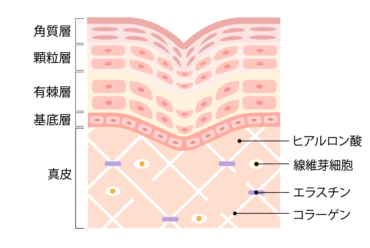 乾燥小じわはごく浅いもので、肌の土台である真皮に含まれるコラーゲンやエラスチンなどの成分には、深刻なダメージはほとんどみられません。