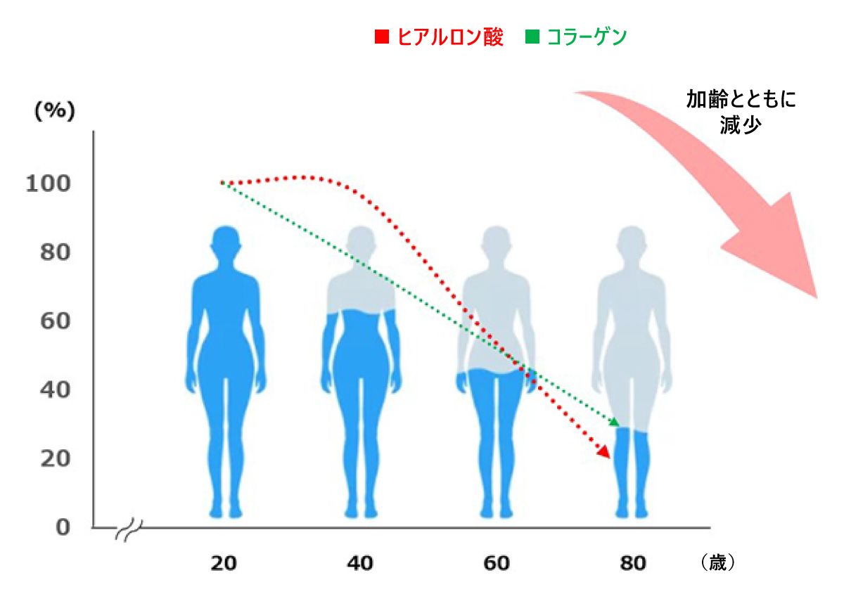 ■加齢とヒアルロン酸・コラーゲンの量の関係